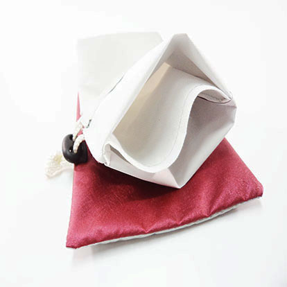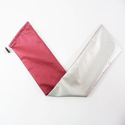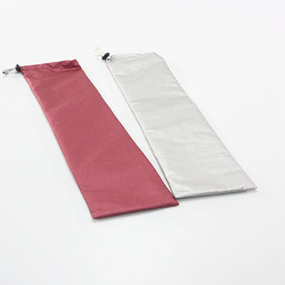 Изготовлен из водонепроницаемого металлизированного оксфорда серебристого и бордового цветов. Внутри чехла два отделения для раздельного хранения булав. Чехол затягивается с помощью шнурка со специальным фиксатором.